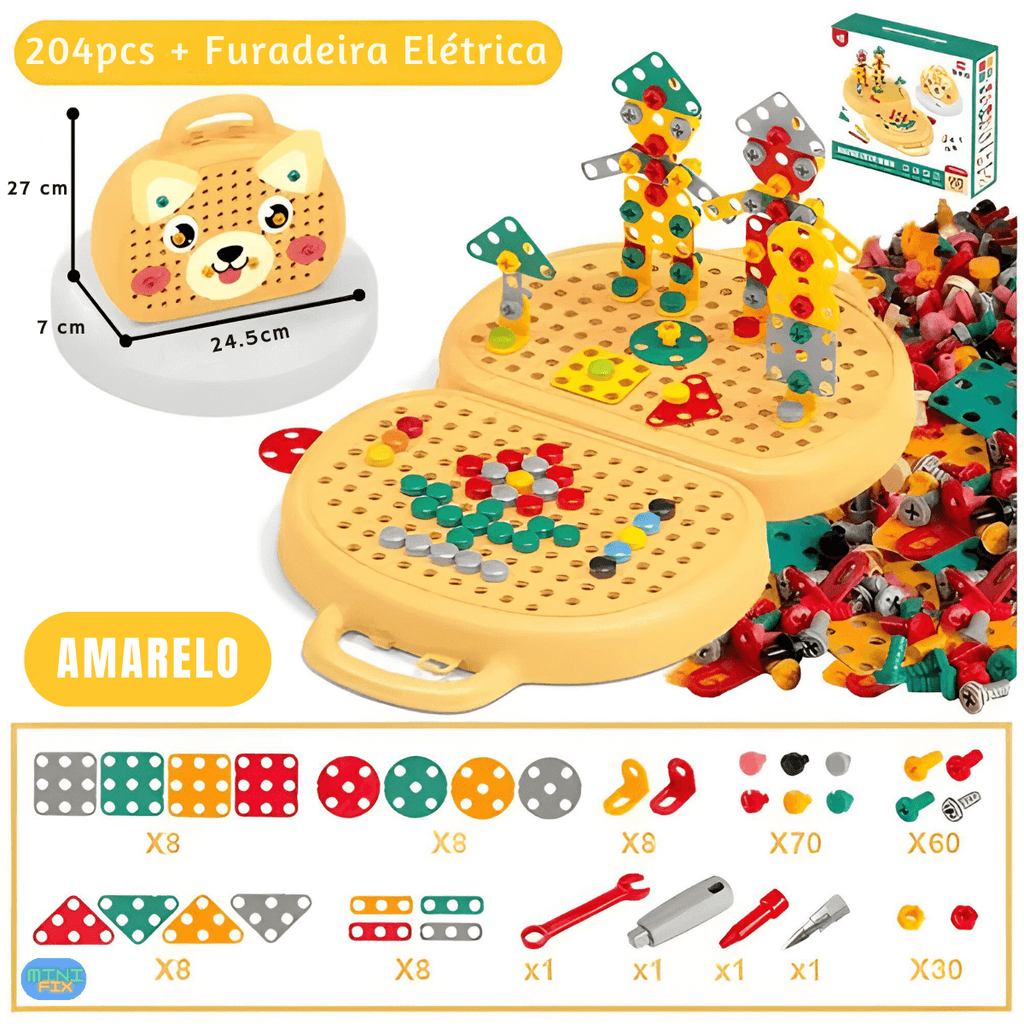 Vá além dos brinquedos tradicionais e mergulhe no mundo da Montessori com o nosso MiniFix - Mini Parafusadeira Infantil. Se seu filho tem curiosidade, este é o presente perfeito!